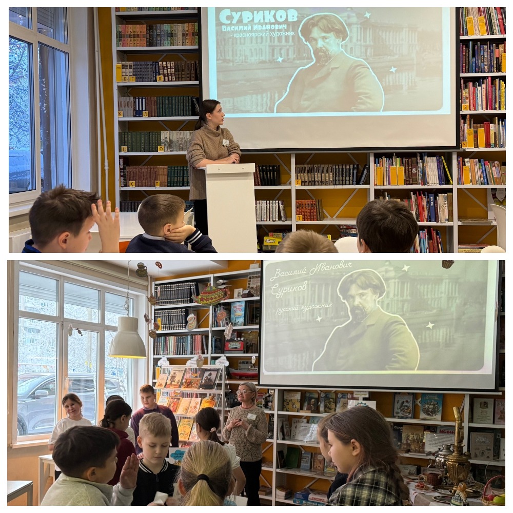 В нашей библиотеке прошло увлекательное мероприятие для учащихся начальных классов, посвящённое детству и творчеству выдающегося русского художника Василия Ивановича Сурикова.