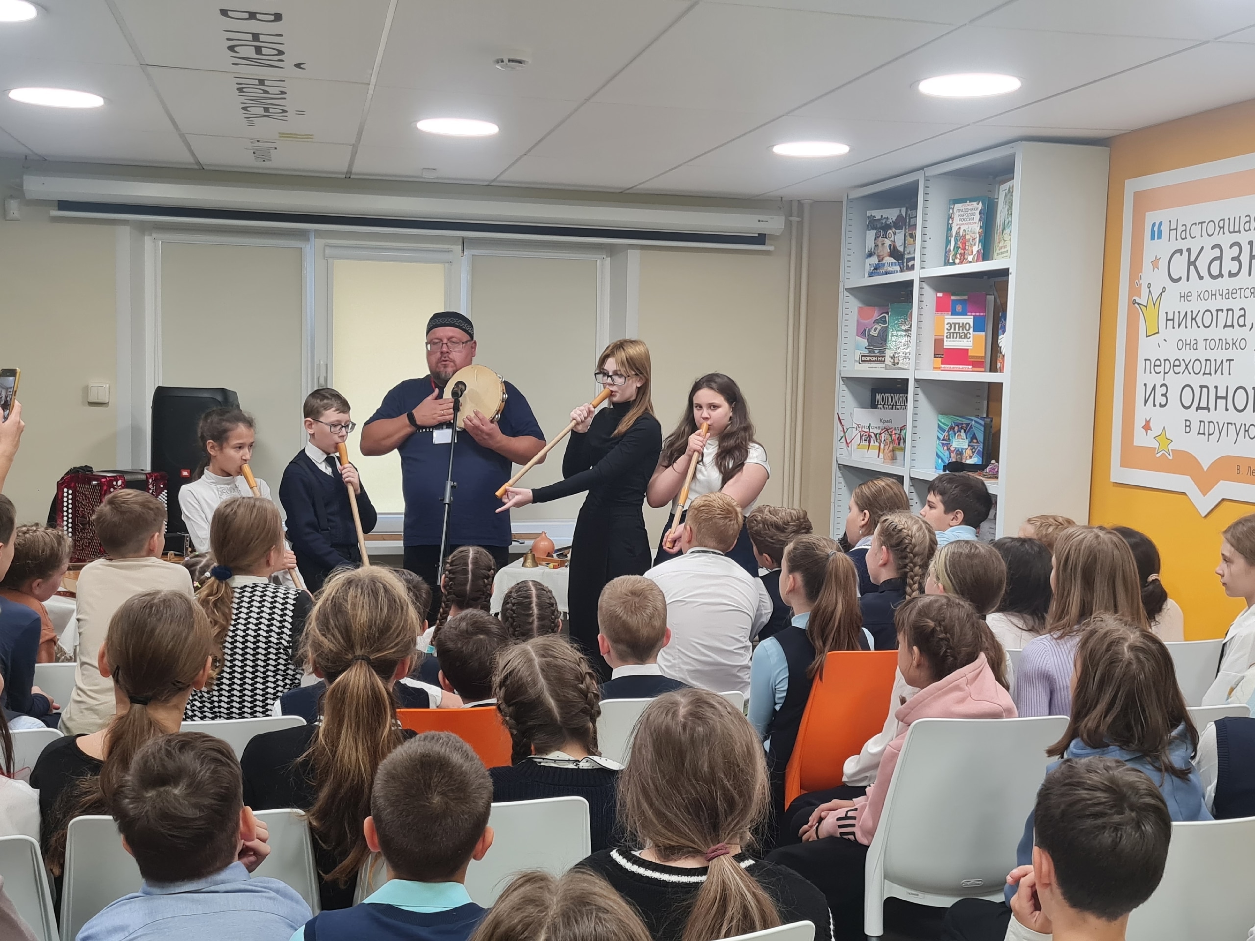Роман Владимирович познакомил ребят с увлекательной творческой программой «Заиграй, дудочка, весело!..», представив свою уникальную коллекцию народных музыкальных инструментов. Гости мероприятия смогли насладиться звучанием редких и традиционных инструментов, погрузившись в атмосферу народного творчества и музыкального искусства. Каждый инструмент открывал новые грани музыкальной культуры, позволяя слушателям ощутить живое дыхание народной музыки и её неподражаемую энергетику. Встреча стала настоящим праздником звуков и настроений, подарив незабываемые впечатления и вдохновение каждому участнику.