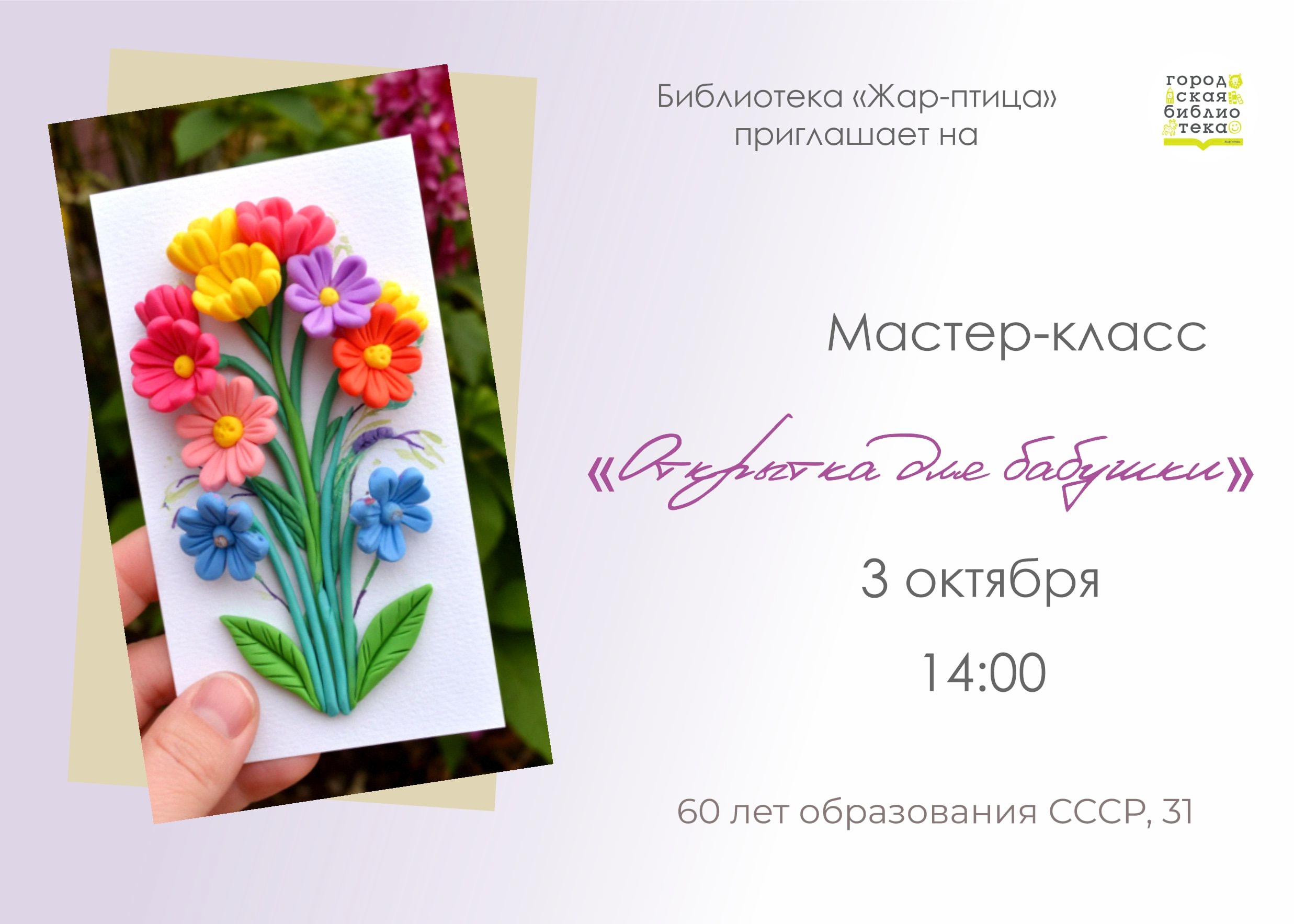Приглашаем вас и ваших детей в нашу библиотеку на тёплый и уютный мастер-класс «Открытка для бабушки». Вместе мы создадим красивые и трогательные открытки, которые станут лучшим подарком, ведь они будут сделаны с любовью!