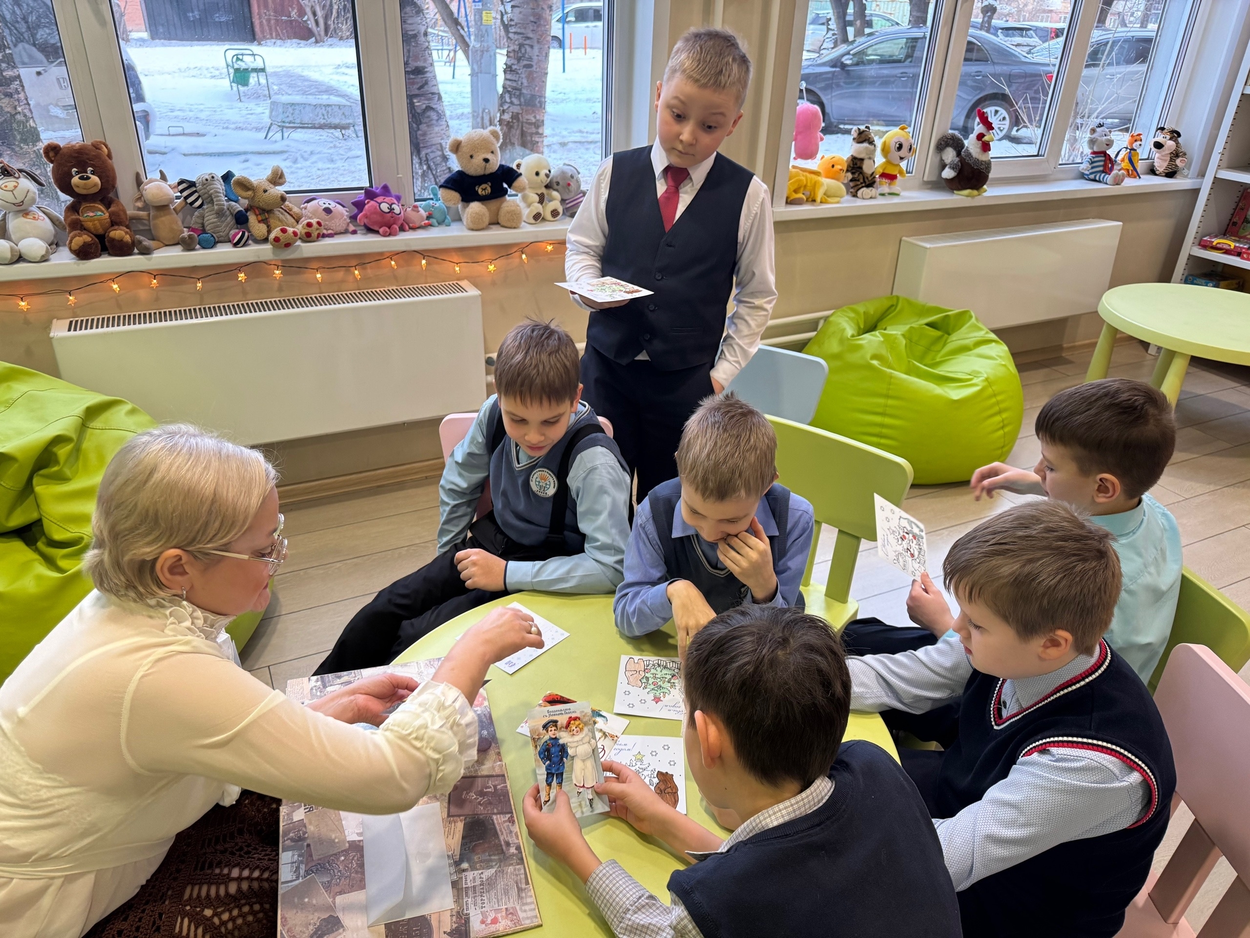 Очутились в кухне дома Морозовых, где разукрасили новогоднюю открытку, а в парадной зале нарядили ёлочку, как в далеком 1912 году.