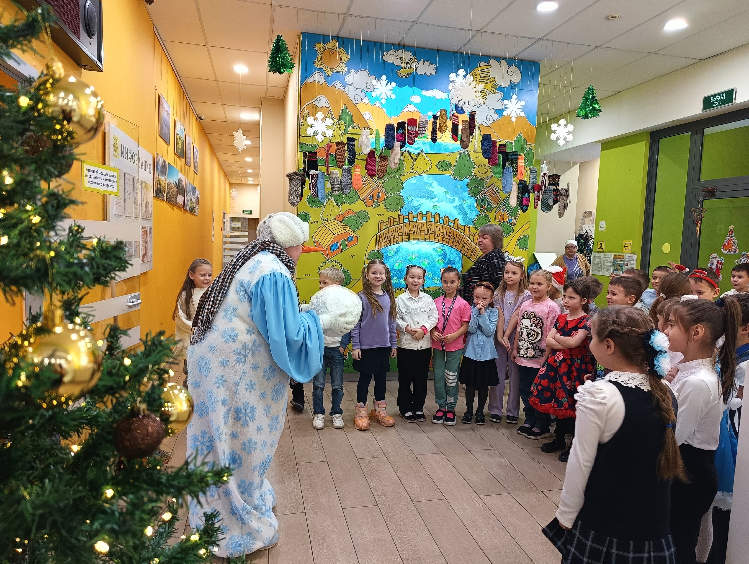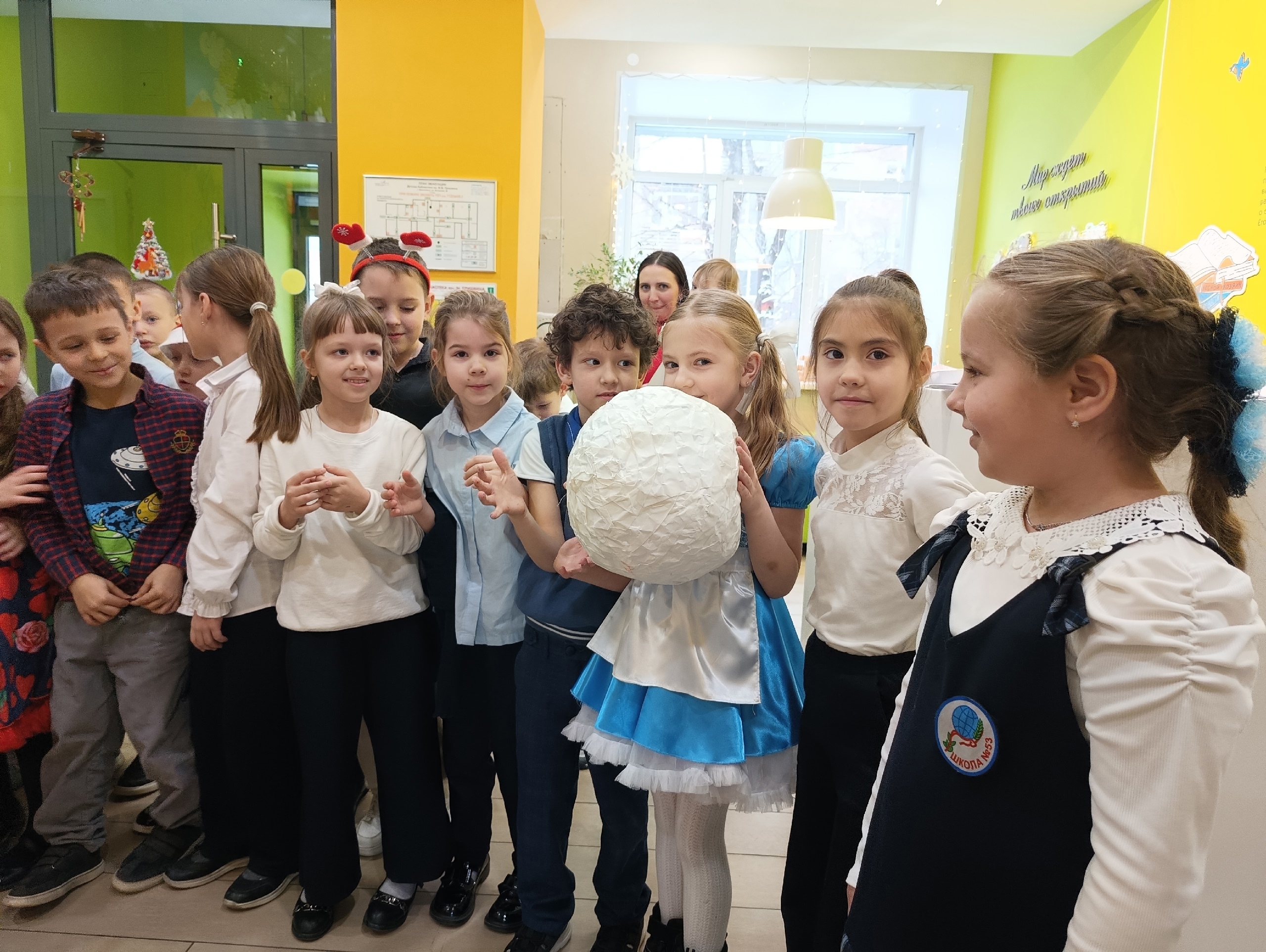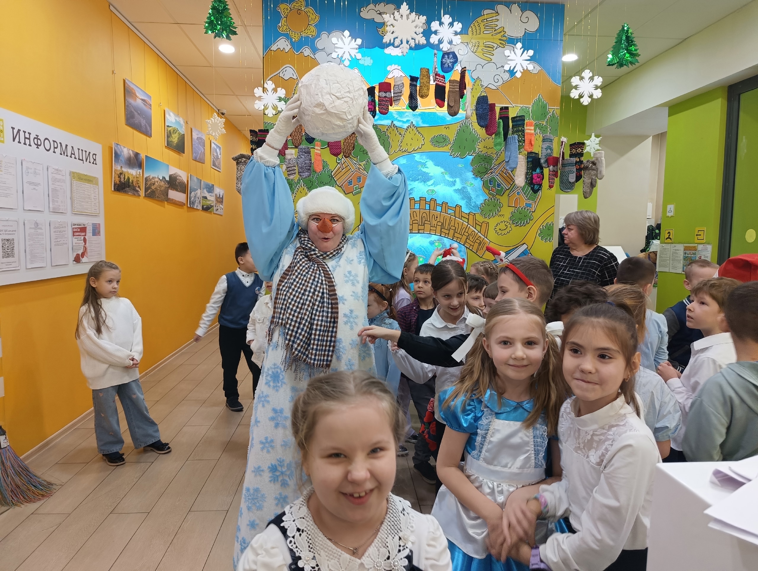 Новогодняя интерактивная программа для юных читателей 1 "А" МАОУ СШ №53 Красноярск . Это увлекательное зимнее приключение наполнено весельем, играми, танцами, волшебными заданиями и превращениями от Бабы Яги и Снеговика Почтовика!