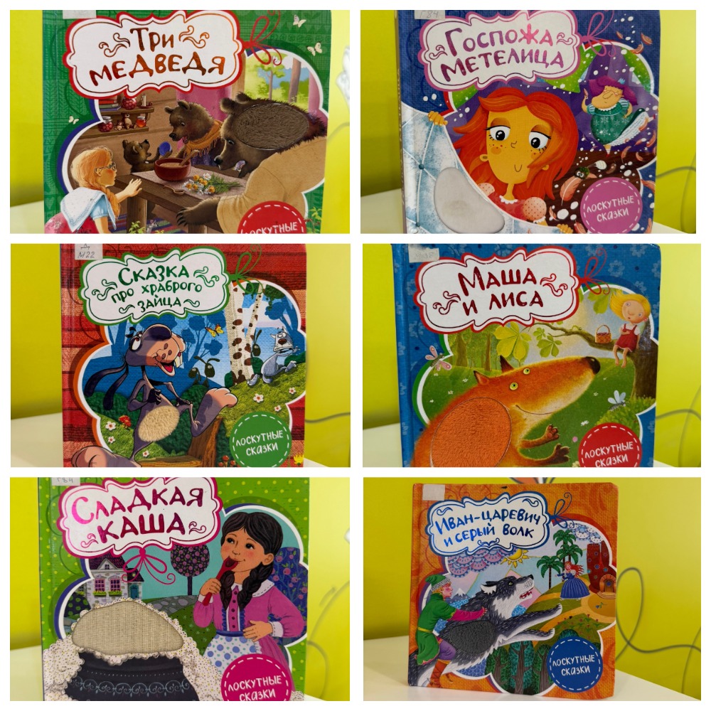 Все шесть книг уже ждут вас в нашем игровом зале — с плотными страничками, яркими иллюстрациями и, самое главное, тактильными вставками из настоящих тканей Малыши с радостью проведут пальчиками по шерстяной шубке или шелковому платочку.