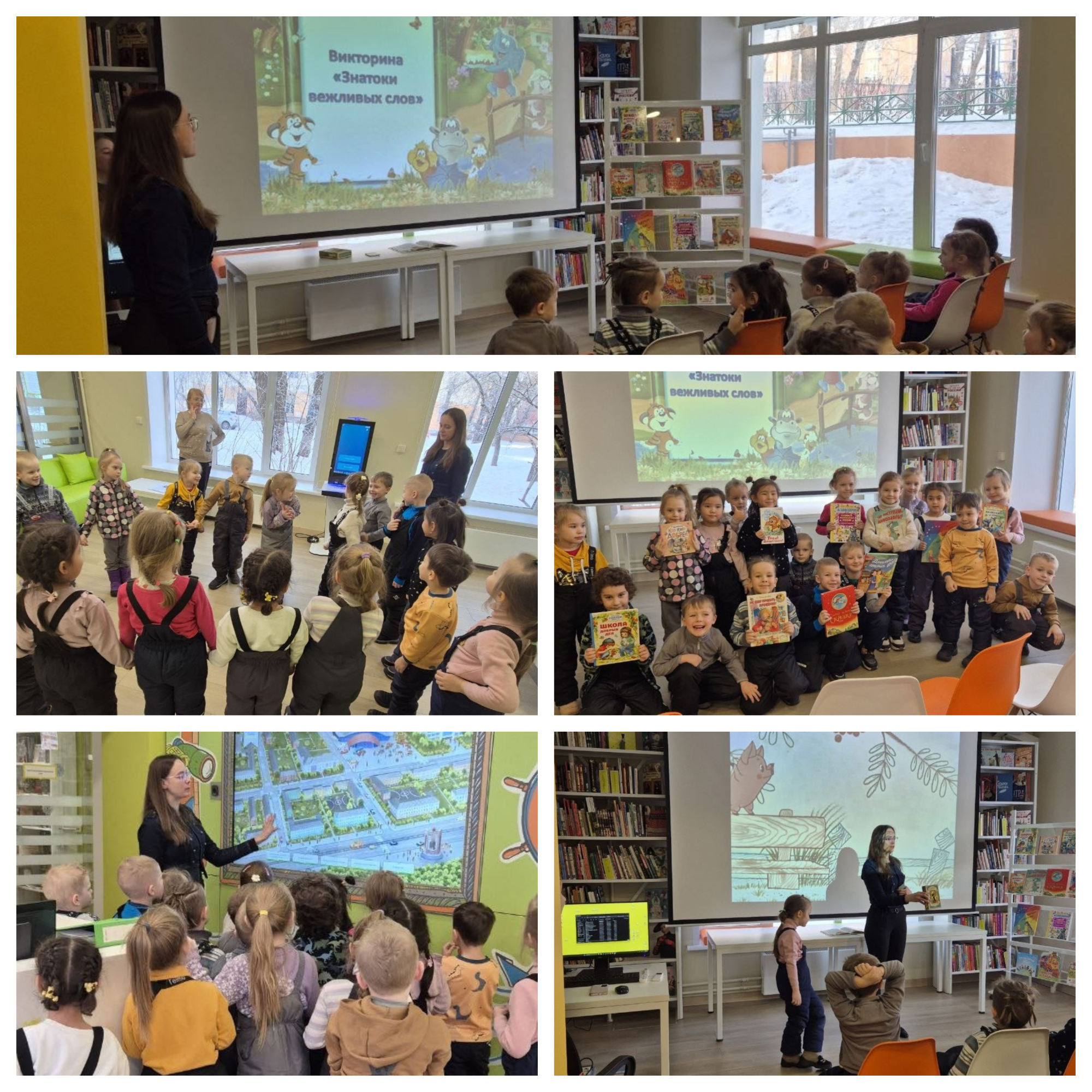 Сегодня к нам в библиотеку пришла группа "Радуга" из д/с 24, чтобы принять участие в викторине "Знатоки вежливых слов".