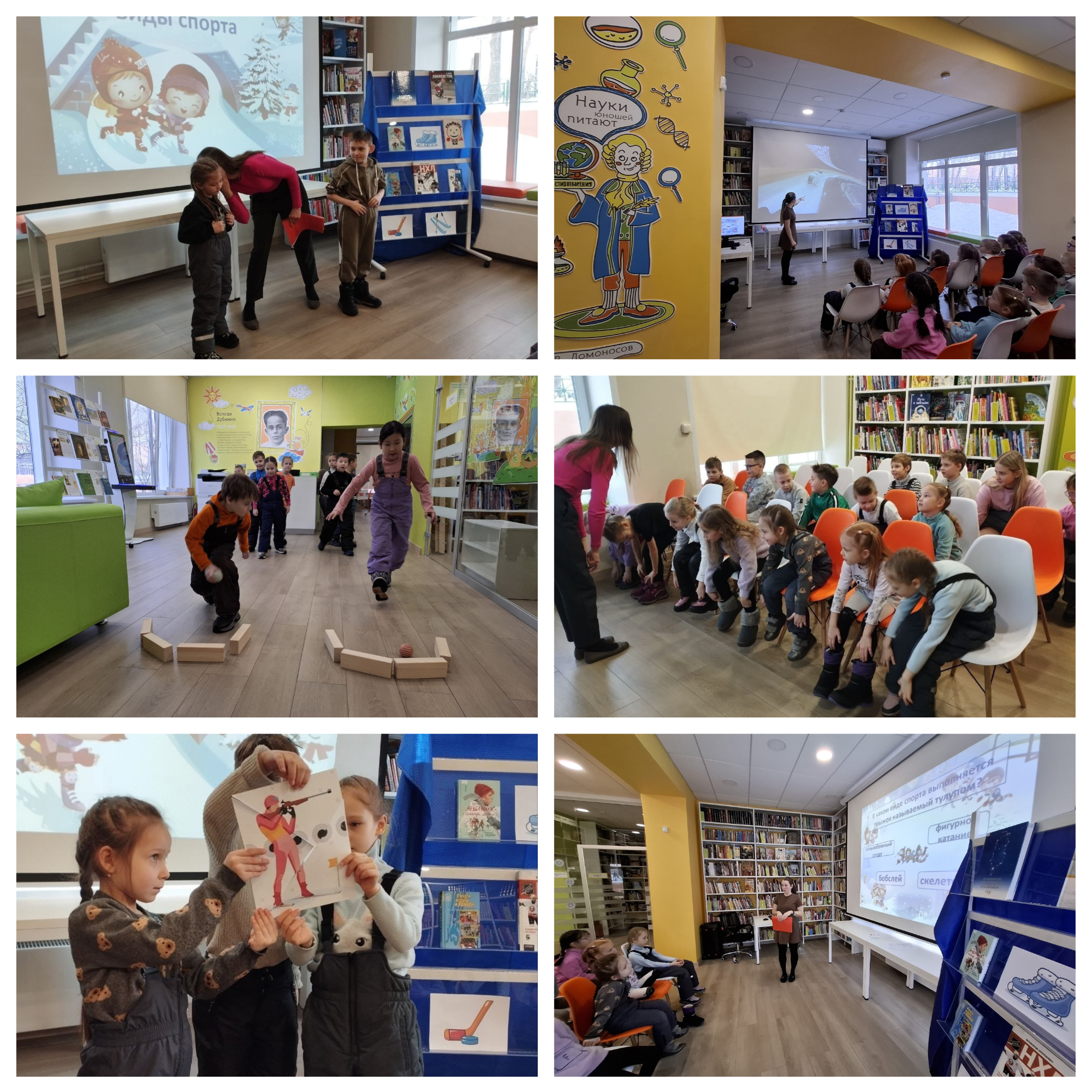 К нам в библиотеку на игровую программу "Зимние виды спорта" пришли две группы дошколят "Солнышко" и "Капелька" из детского сада 24.