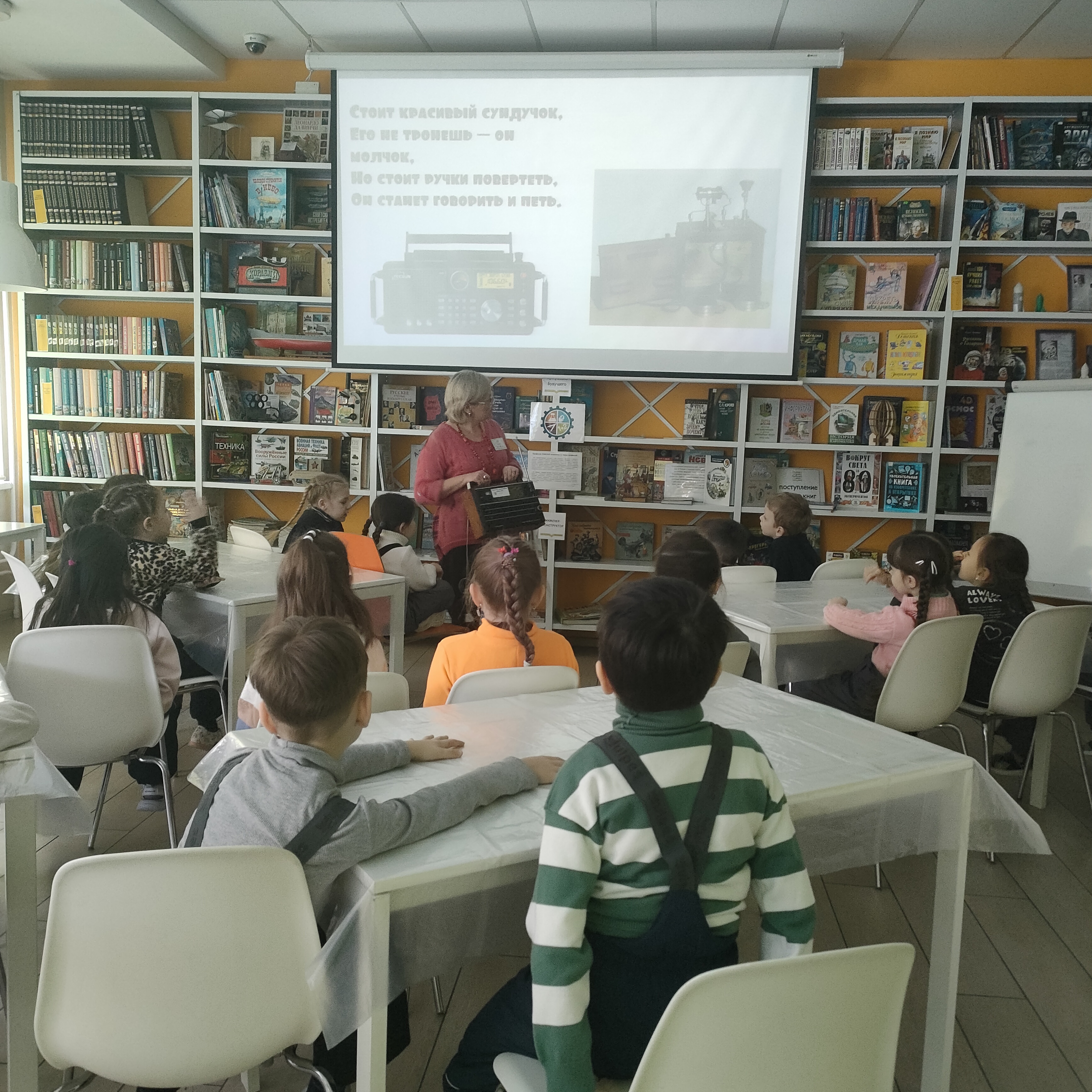 Библиотеку посетили ребятастаршей группе детского сада "ЛиСа" для них прошло увлекательное занятие — слайд-шоу «Кто такой инженер?»
