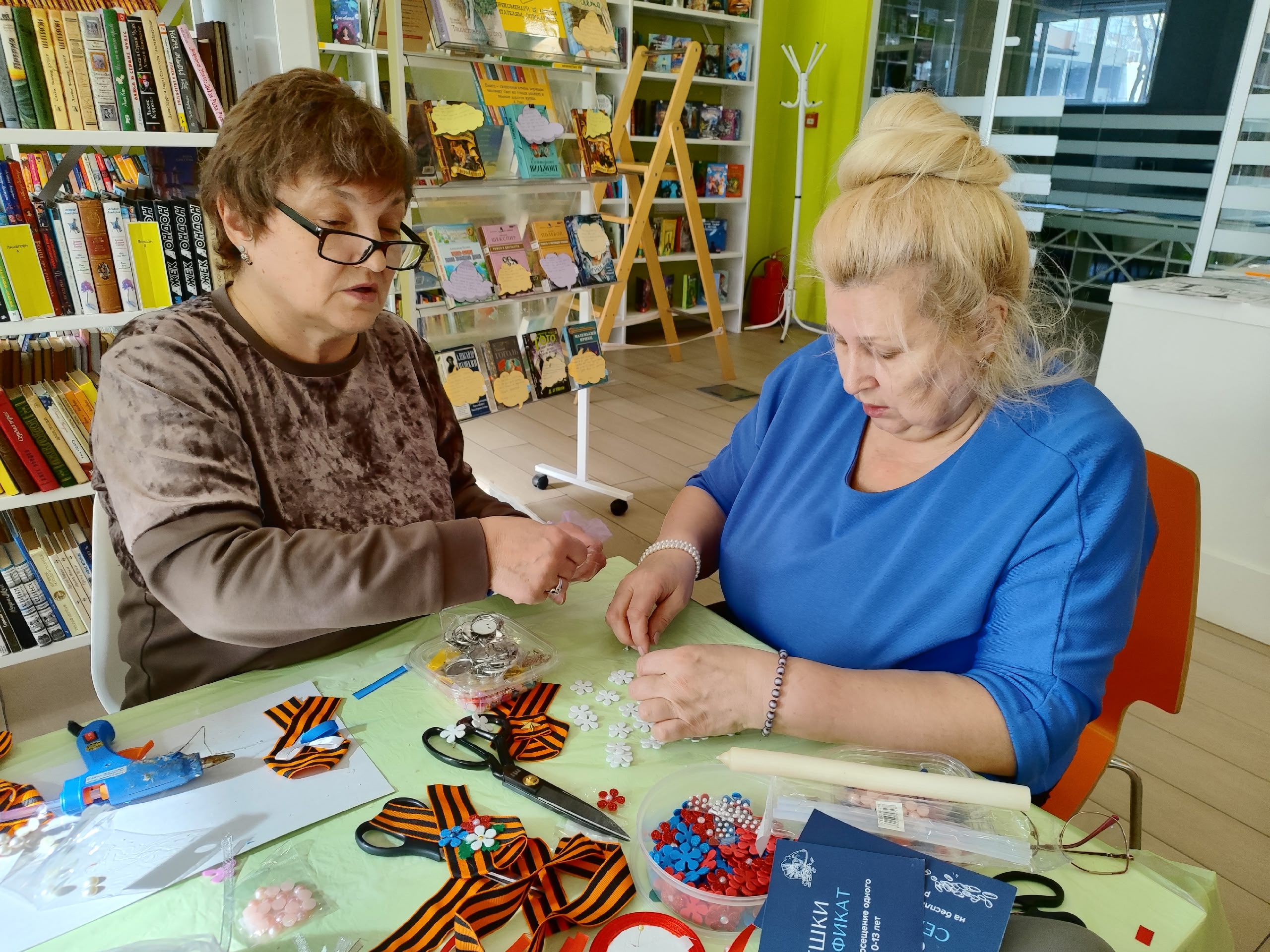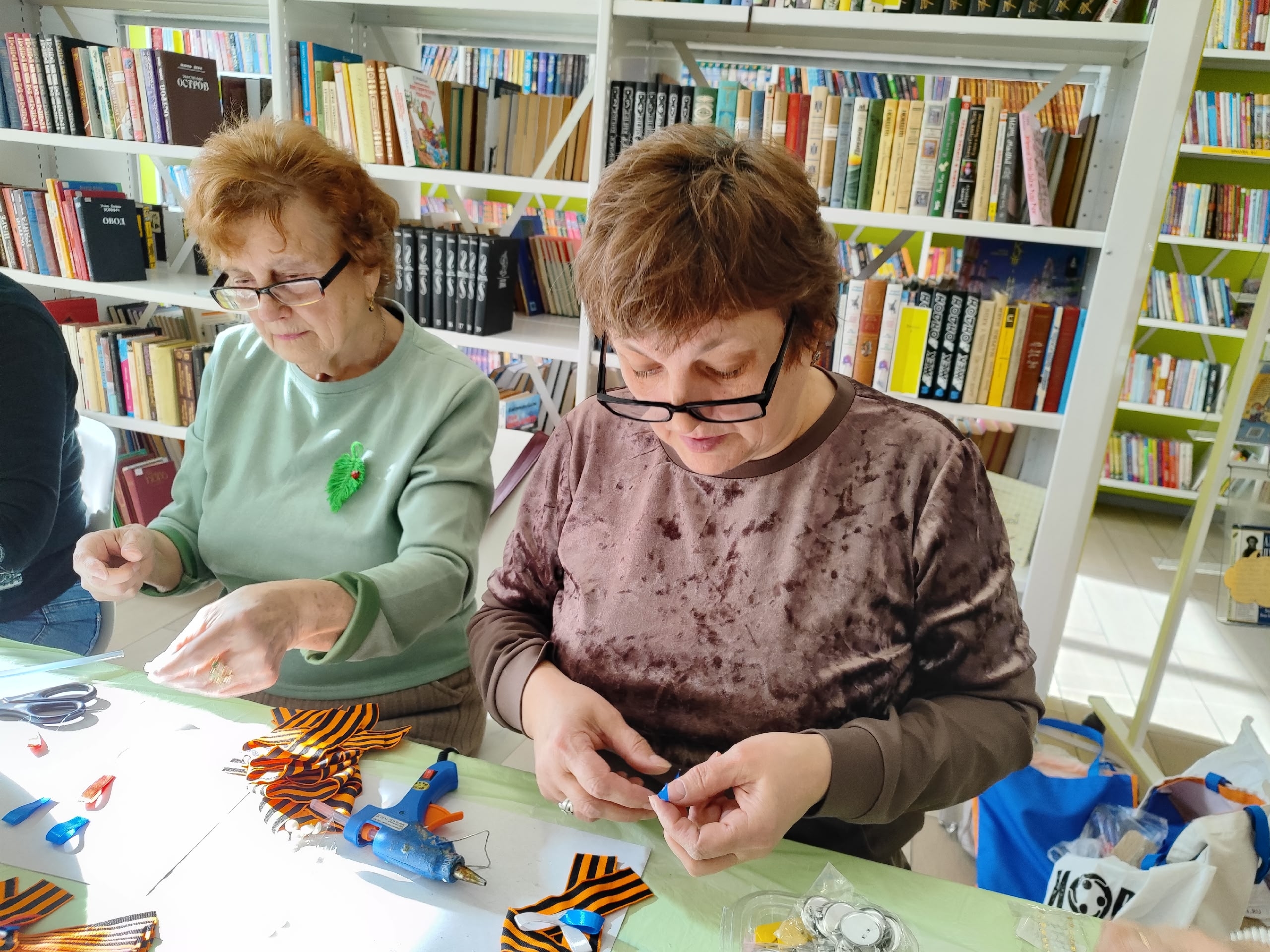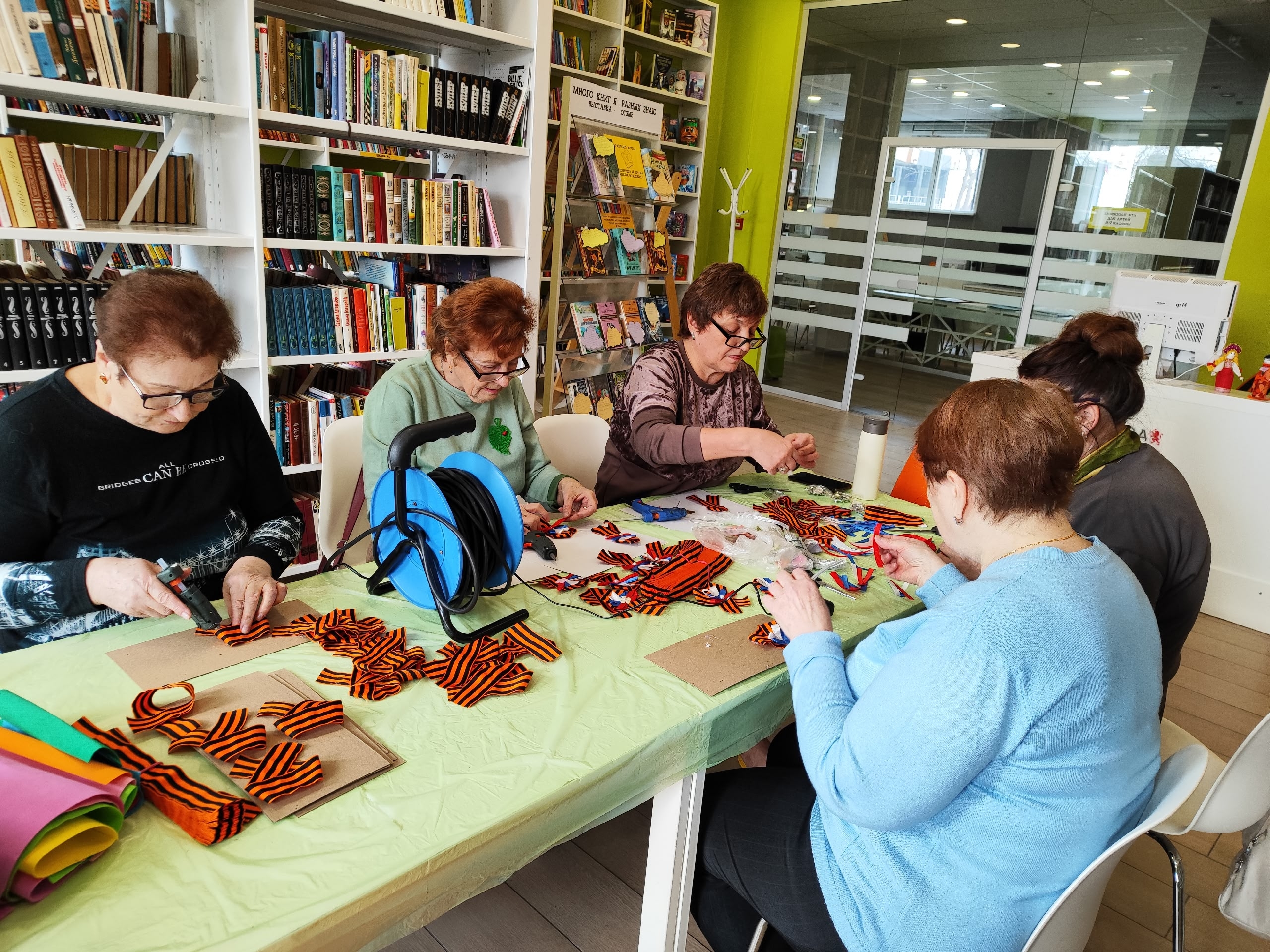 В этот раз руками этих бескорыстных людей и их помощников создавались броши Победы из Георгиевской ленты - символа воинской славы России.