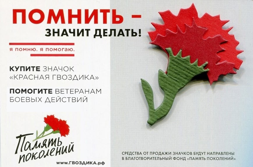 КУПИТЕ ЗНАЧОК «Красная Гвоздика» в память о подвигах ветеранов.