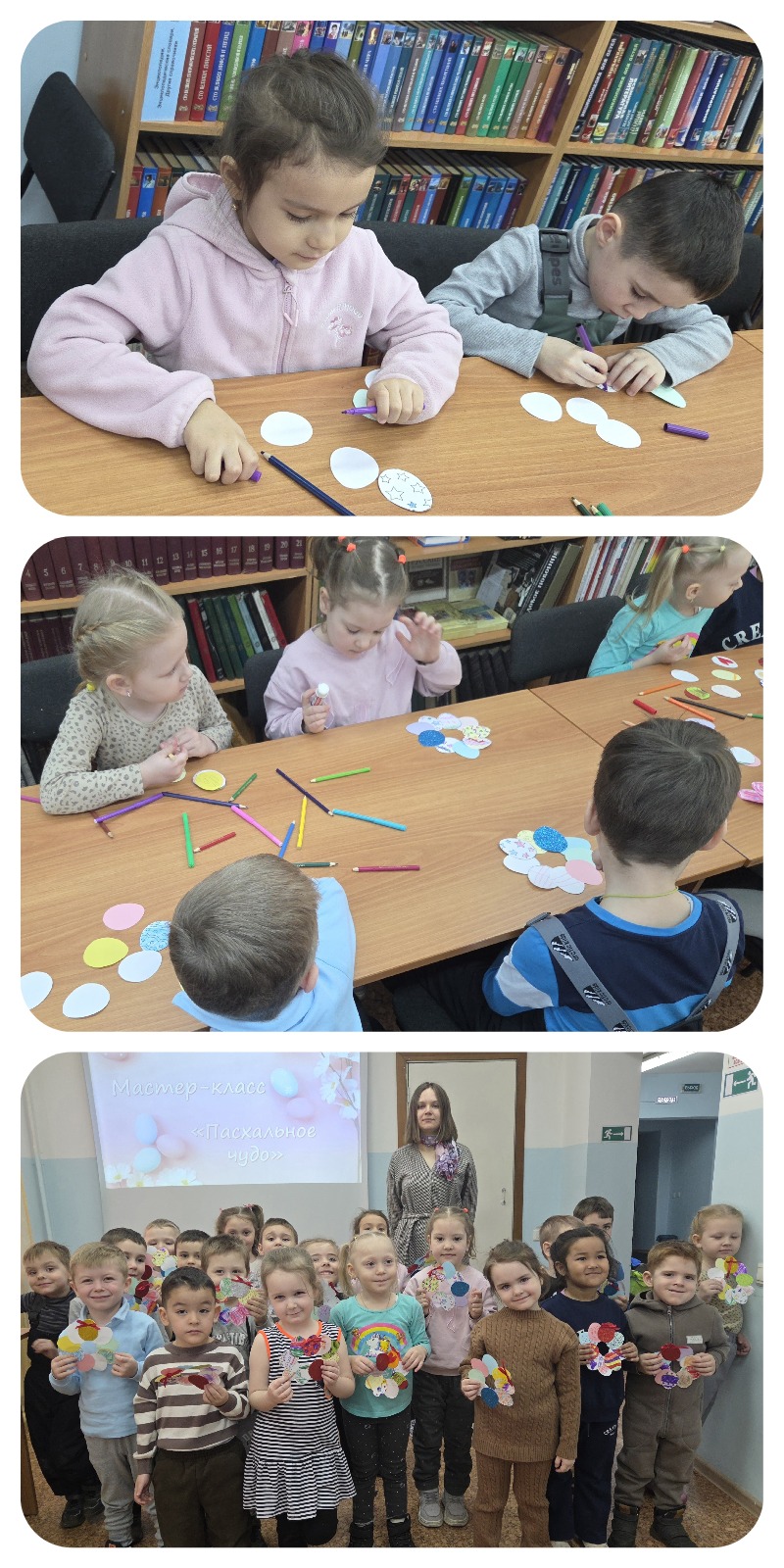 Ребята из Детского сада № 27 посетили нашу библиотеку и приняли участие в мастер-классе «Пасхальное чудо». В начале мероприятия они узнали об истории и традициях этого праздника, а затем своими руками создали очаровательную поделку с символом приближающегося светлого праздника Пасхи. Теперь эти поделки могут украсить дом или стать подарком для родных!