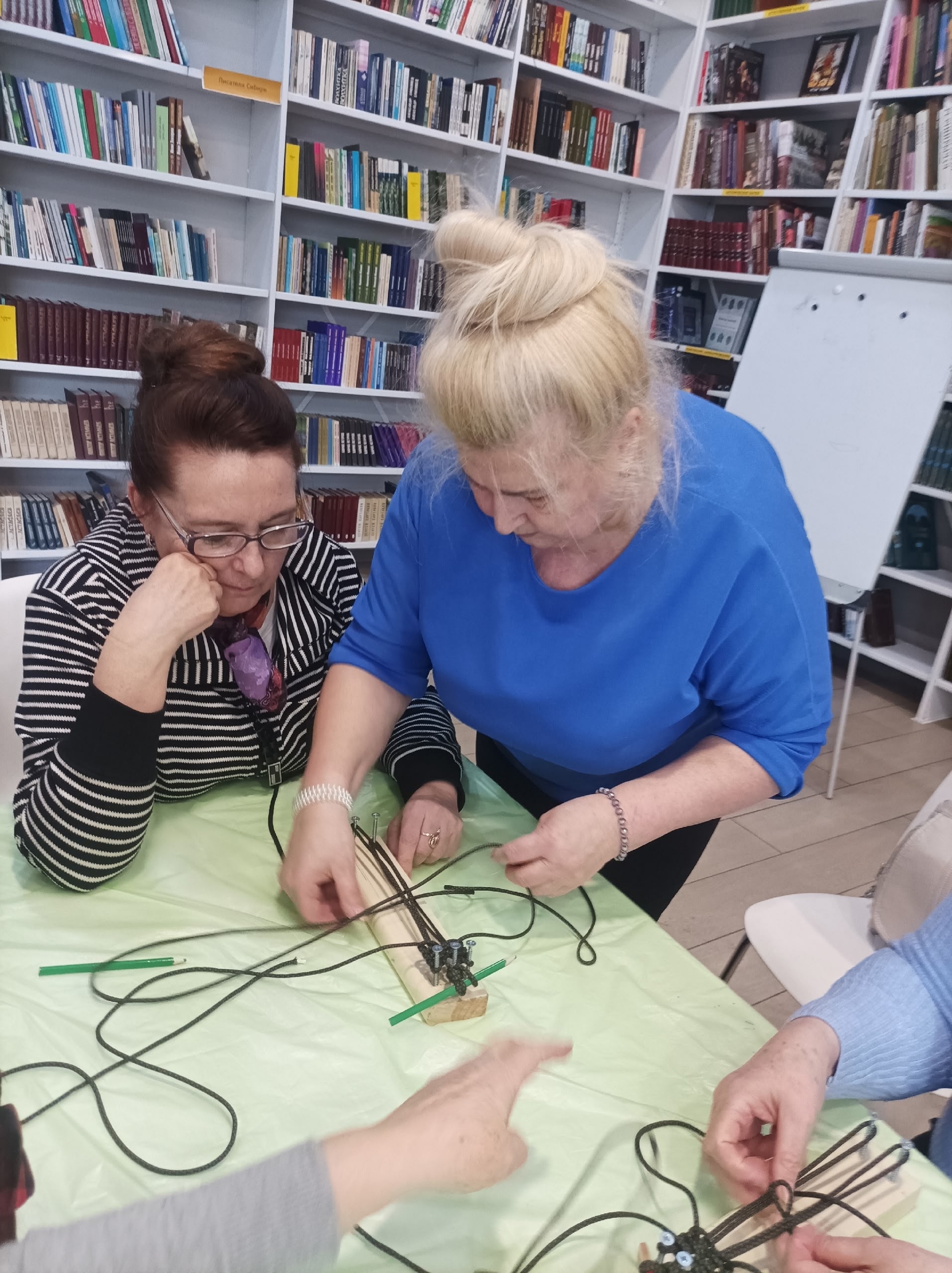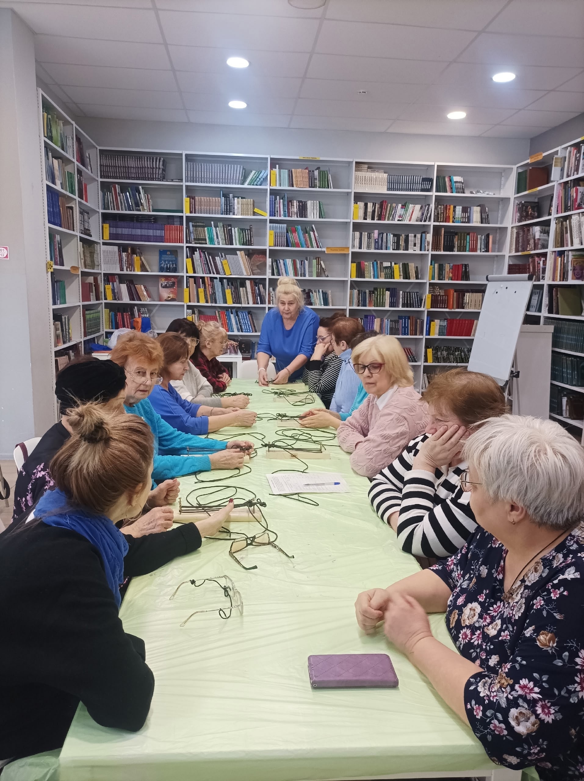 В библиотеке собрались неравнодушные люди, чтобы изготовить такие браслеты.