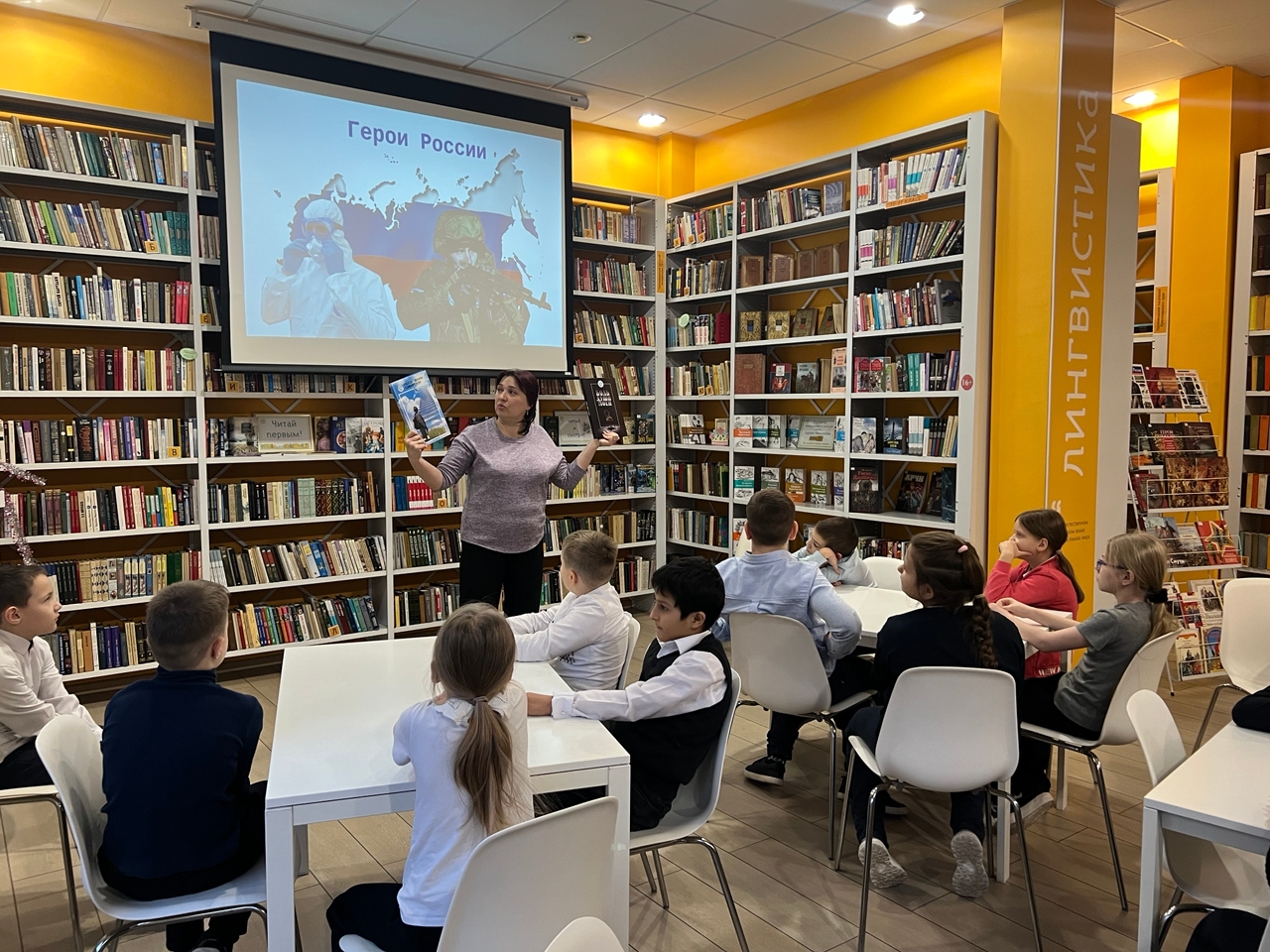 Школьники познакомились с историей памятной даты Дня Героев Отечества, с легендой о Георгии Победоносце, с примерами героизма и отваги воинов России в разные периоды нашей истории, узнали о подвигах тех, кто является героем в наши дни. Вместе с детьми обсудили стихотворение С. Маршака "Рассказ о неизвестном герое" и сделали вывод, что и в мирное время совершаются героические поступки. Мероприятие завершилось показом книжных изданий в память о погибших героях СВО.