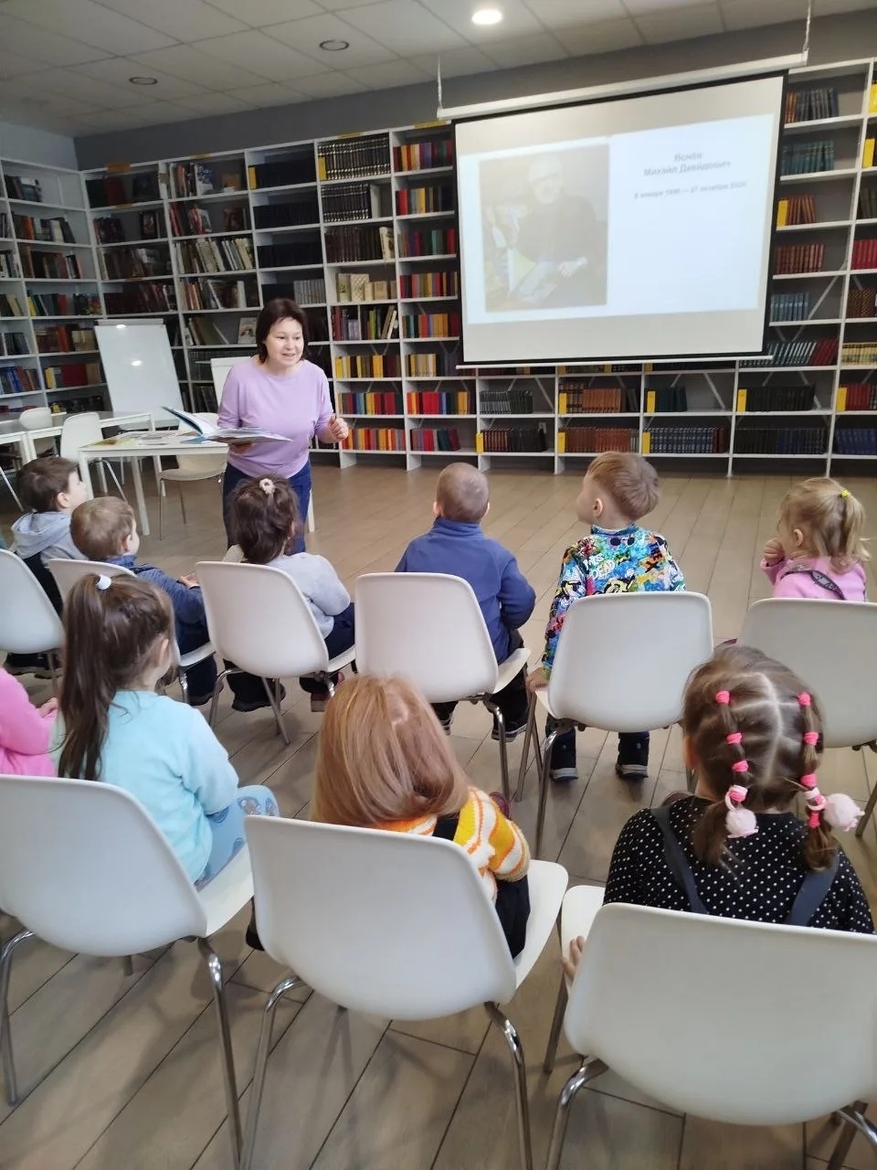 Сегодня к нам в библиотеку приходили малыши группы «Золушка» детского сада № 301. Ребятишки слушали весёлые и загадочные стихотворения Михаила Яснова. А ещё мы посмотрели музыкальный рисованный мультфильм «Чучело-мяучело», в котором котёнок поёт песенку на стихотворение этого писателя.