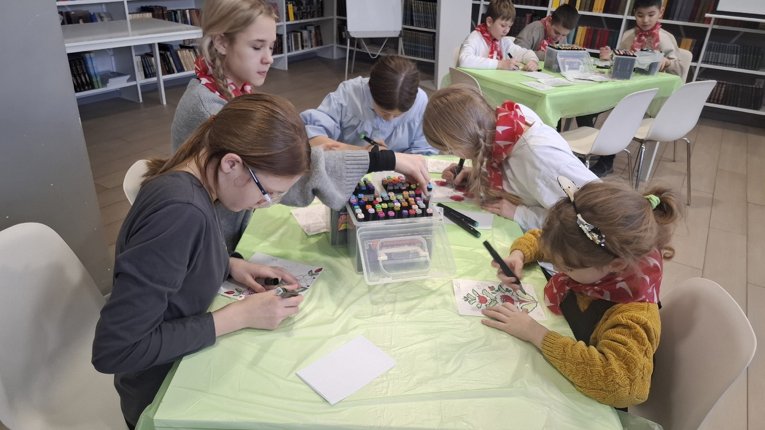 Украшать красками деревянные предметы в России мастера-художники и иконописцы начали в XVII–XVIII веке, с тех пор прошло уже много лет, но промыслы возрождают и сохраняют. В конце мастер-класса ребята выбрали узоры и орнаменты, и сами создали свои шедевры. Получилось ярко, красочно и волшебно.