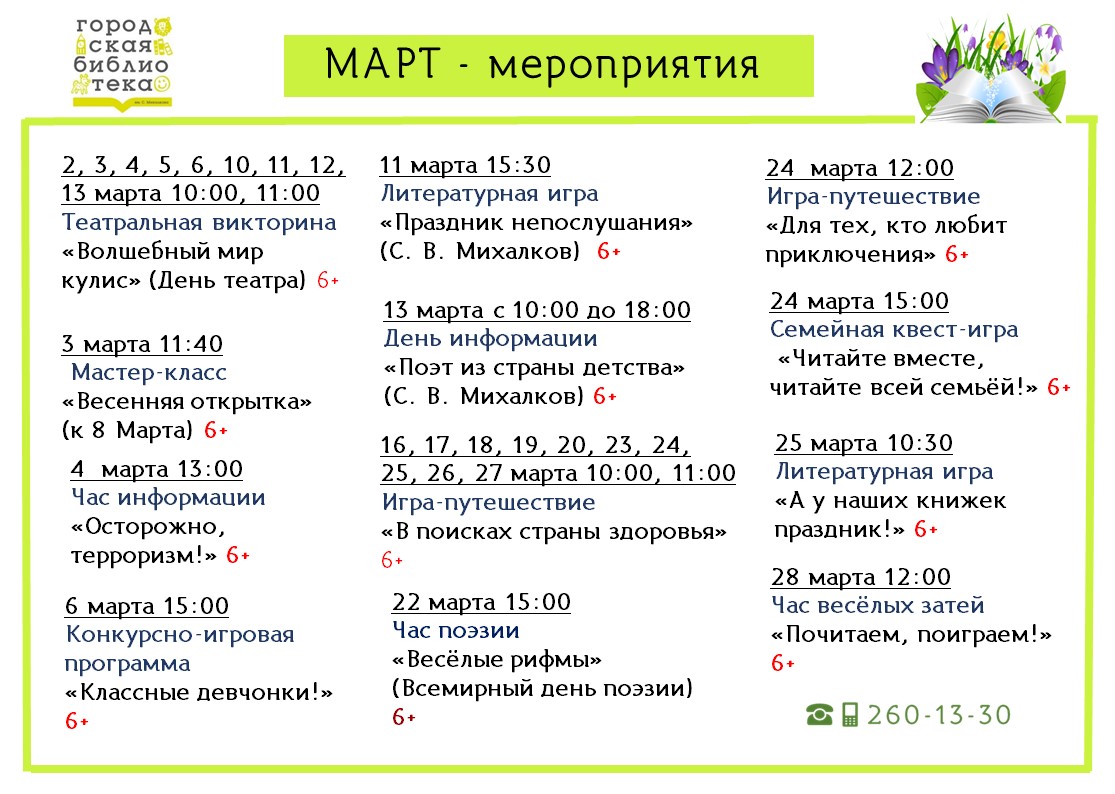 План мероприятий на март