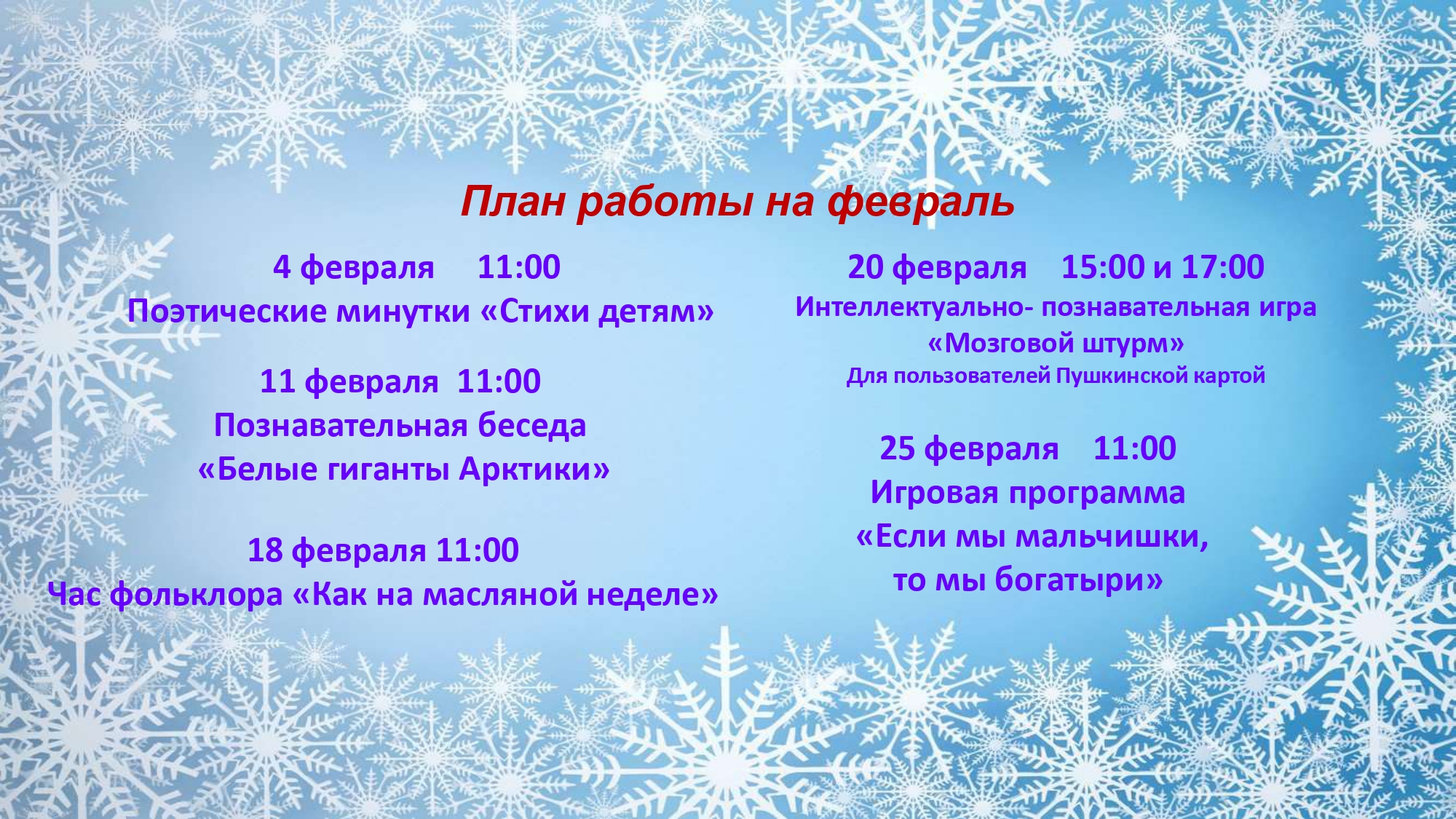 план на февраль