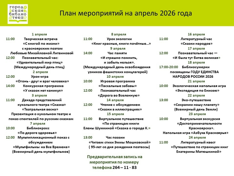 План мероприятий на апрель 2026