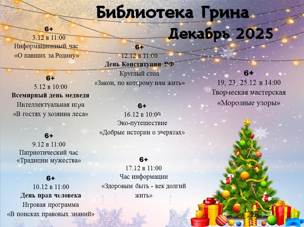 План работы на Декабрь
